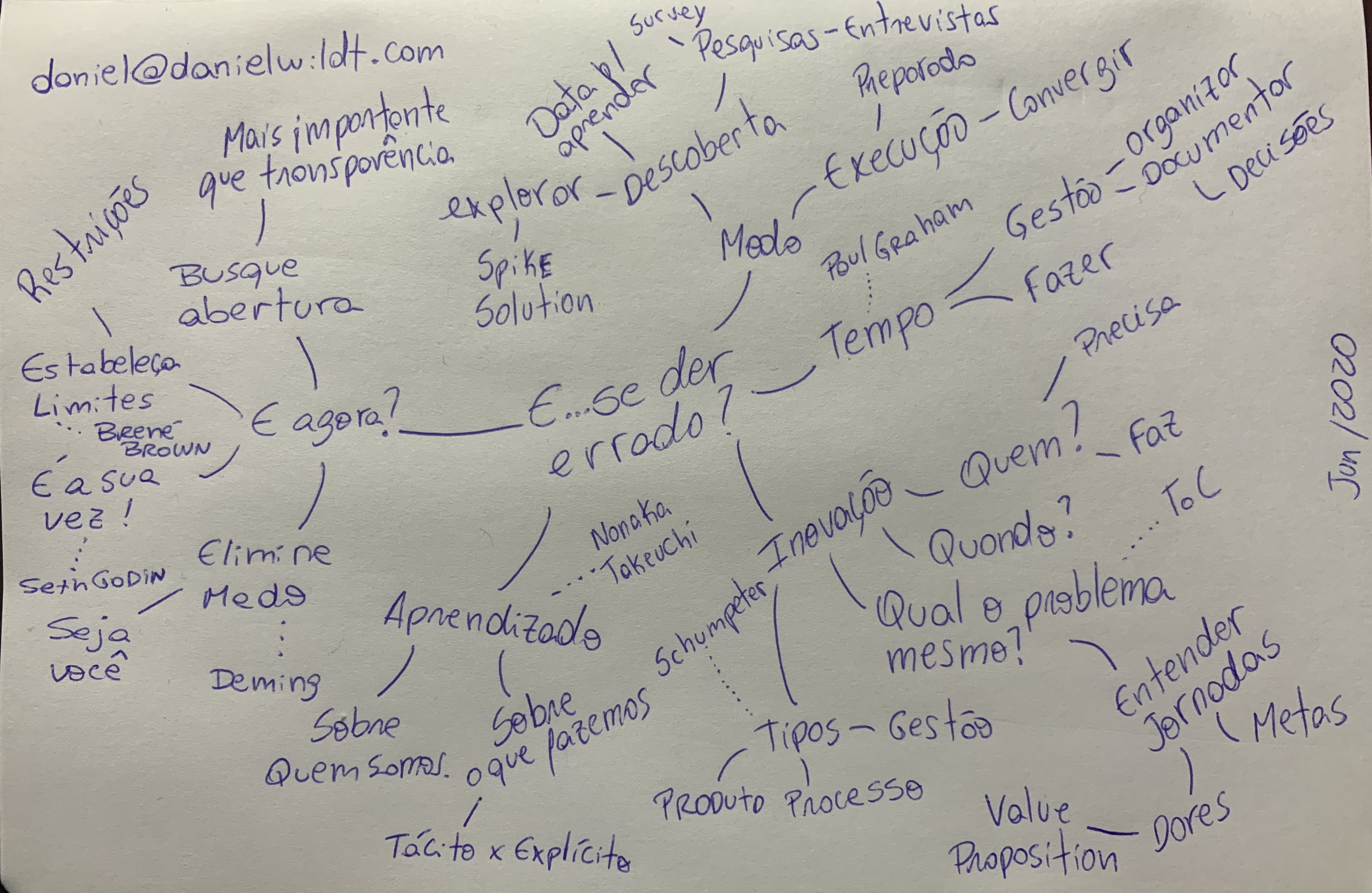 O importante é ter um jeito fácil, que você possa atualizar sobre o seu contexto, conhecimentos e estrutura. Quer dizer, nada impede você fazer uma pintura, fazer algo mais manual e resolver fazer outra versão de tempos em tempos. Eu também comento que tenho a prática de fazer mapas mentais em papel e caneta. Inclusive tenho álbuns com meus mapas mentais.